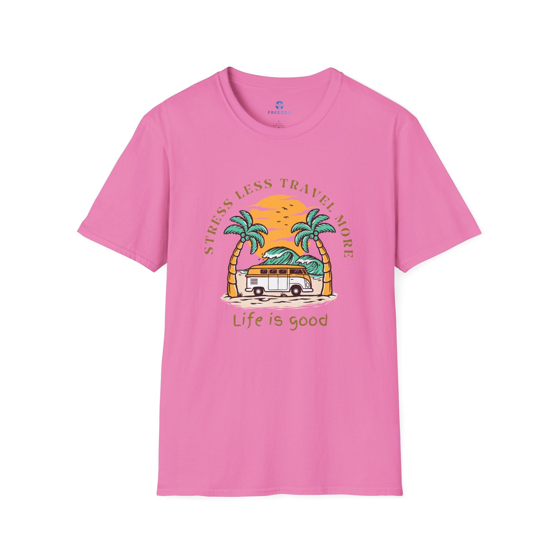 Beautiful stress less and travle more tshirt selection for the very best unique and custom handmade for a very special person that loves to travel. The soft-style t-shirt puts a new spin on casual comfort. Made from very soft materials, this tee is 100% cotton for solid colors. Heather colors and sports grey include polyester. The shoulders have twill tape for improved durability. There are no side seams. The collar is made with ribbed knitting to prevent curling damage.